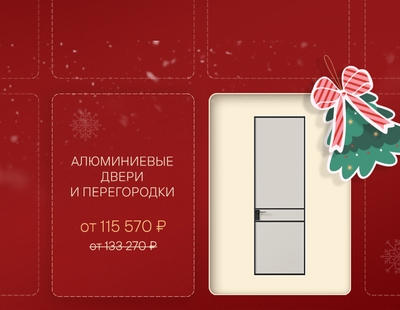 С 5 по 25 декабря при покупке алюминиевых дверей Formato и алюминиевых перегородок Formato дарим скидку 20% на полотно.