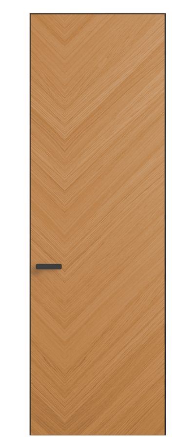 Полотно Rift в скрытом алюминиевом коробе становится полноценным элементом декора. В коллекции представлено 9 моделей дверей в высоте до 3 метров. Рисунок раскладки шпона варьируется от простого до сложного. «Рубашка» для каждого полотна подбирается вручную по цвету, текстуре и фактуре.